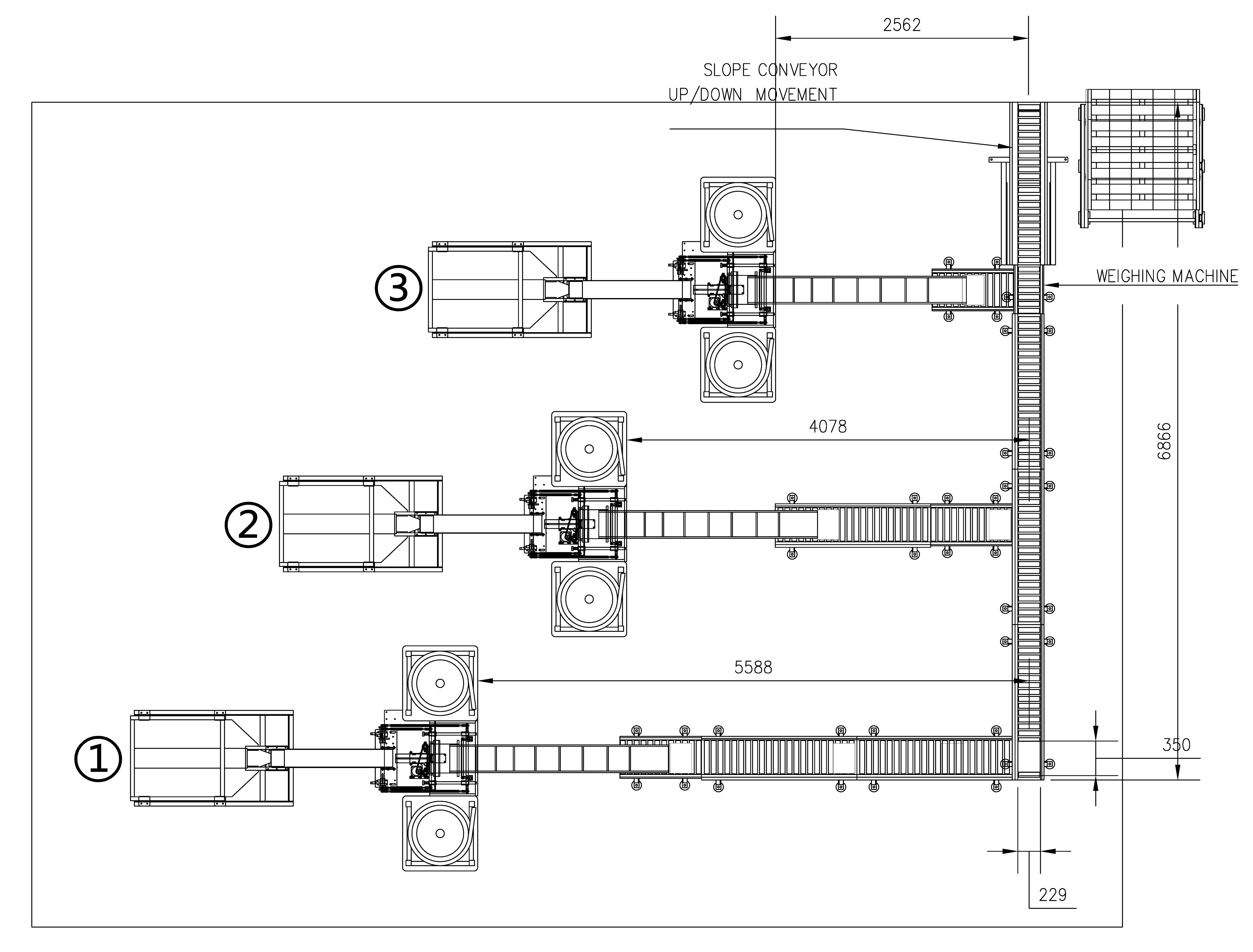 Carton Conveying Line Counter display, roller conveyor, conveyor jointing lifting belt, weighing machine (weight recheck), adjustable roller conveying board (motorized)